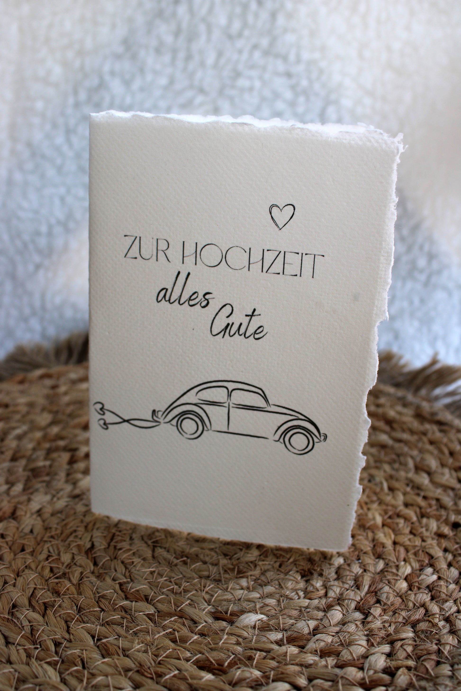 Faltkarte auf Büttenpapier zur Hochzeit - Auto